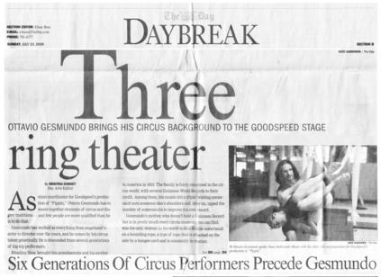 Gesmundo has worked as everything from stagehand to actor to director over the years, and he comes by his circus talent genetically. He is descended from several generations of big-top performers.